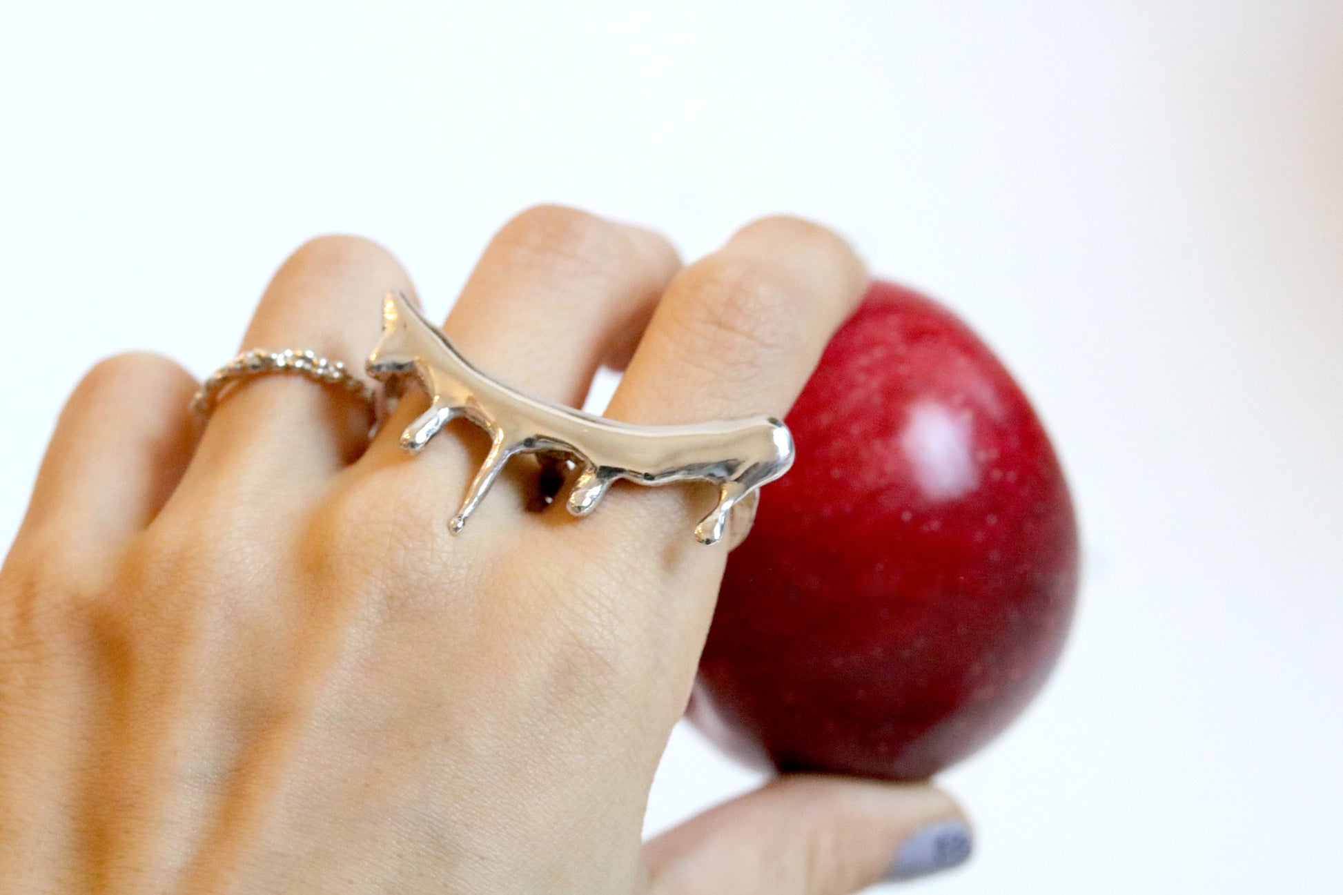 Melted Metal Stream Double Finger Ring