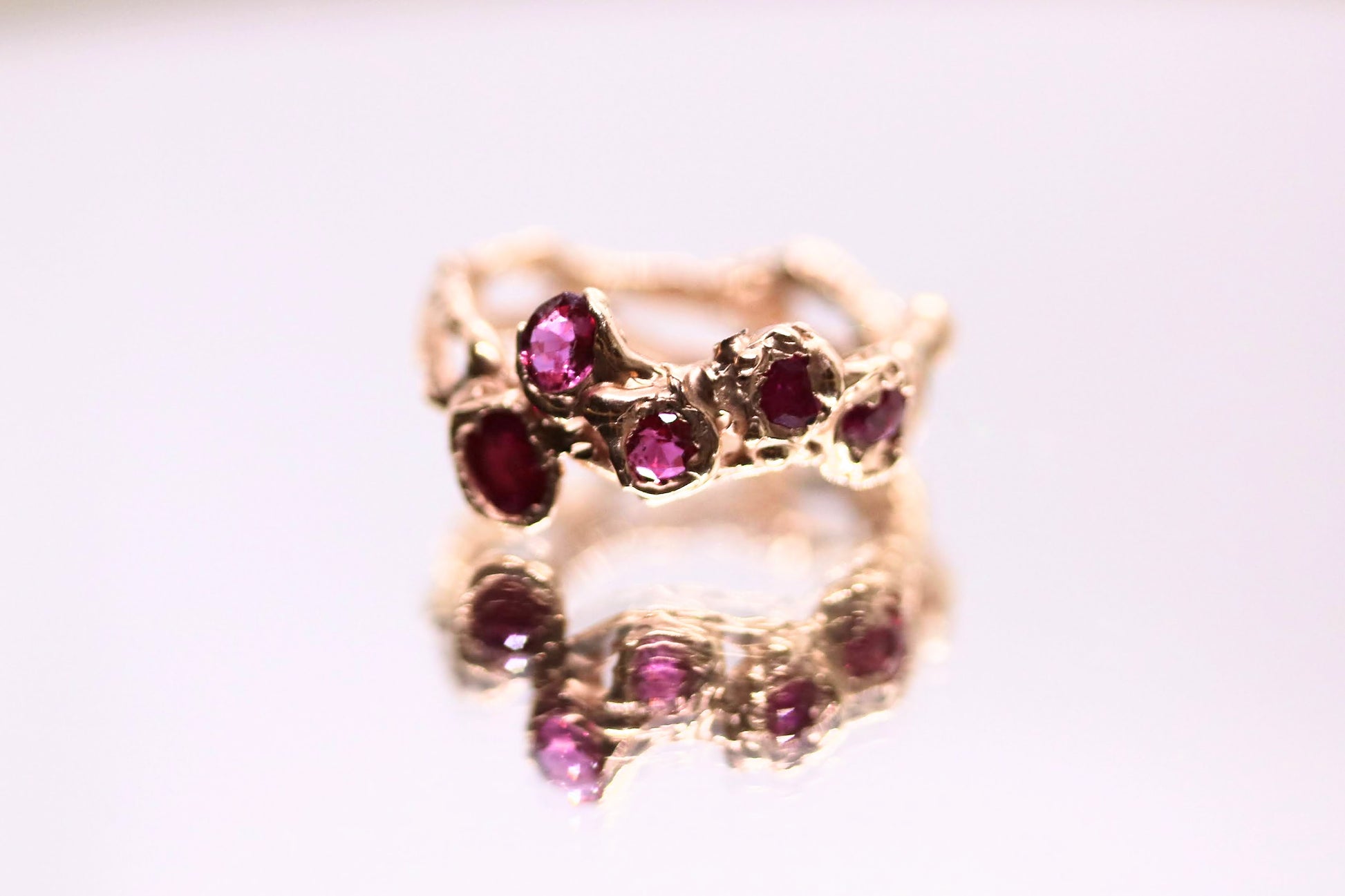 ルビーをいくつも散りばめたラグジュアリーさと、JUKAIの持つオーガニックなデザインを組み合わせたコンテンポラリーな一点ものリングのご紹介です。
